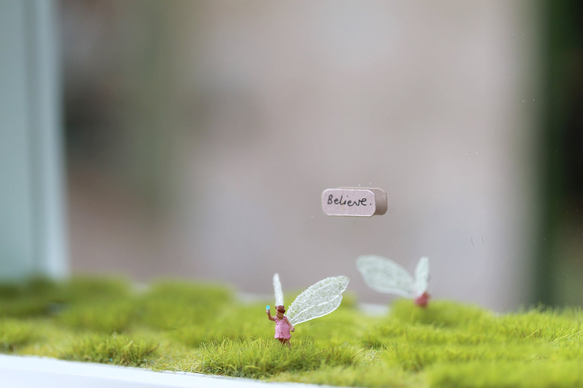 I made this new mirror version of "Believe" after making a mistake gluing a mirror into the back of the box. There was a gap along the bottom so I put down some grass to cover it. And then - what a magical space - fit for a fairy - so I made her and placed gently in. Into her raised hand I popped a single piece of glitter. On the back I wrote the word "Believe". And now she lives in my studio so I can see myself, a fairy, the sparkly speck of glitter and remember to believe in it/us all.